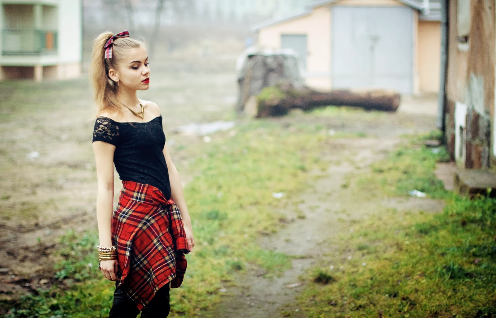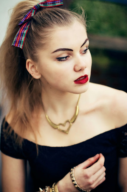 włosach kraciasta kokarda, czarno-złote dodatki. Co sądzicie?